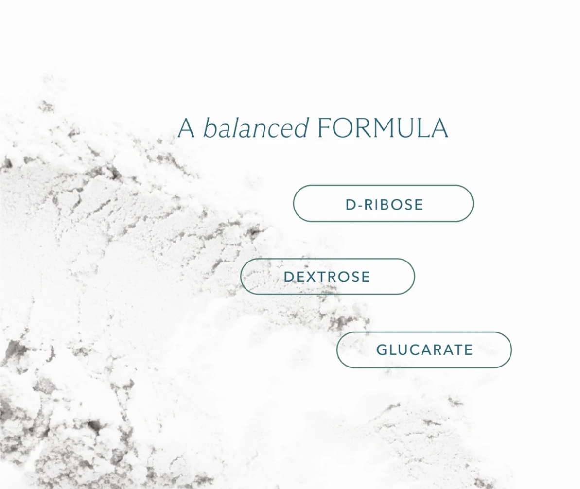 D-Ribose to support cellular energy (ATP) production. Non-GMO Dextrose to provide fast fuel for the brain and muscles. Potassium Glucarate to support recovery and healthy liver function under physical stress.
